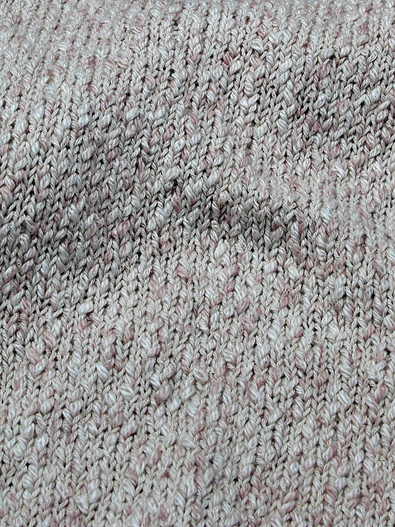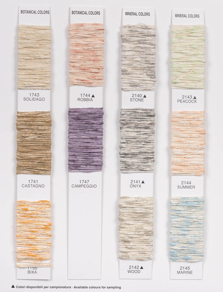 Three-dimensional textured yarn in organic cotton, printed using botanical dyes and mineral pigments.