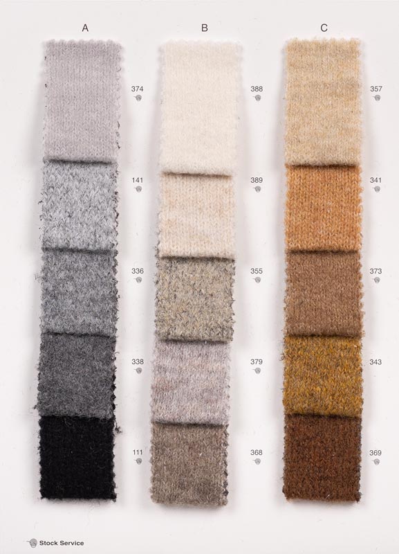 Stretch evergreen con un effetto lana cotta. Vasto assortimento di colori melange in stock service.