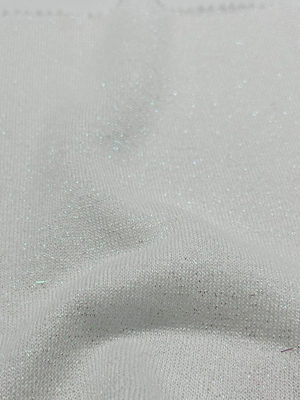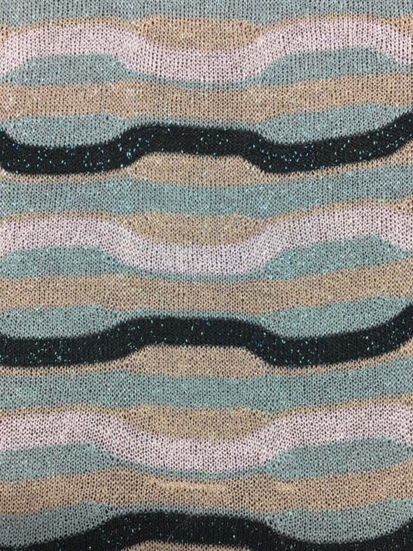 Viscosa ritorta con filo irisé per maglieria fine; il capo assume un elegante aspetto cangiante ed iridescente.