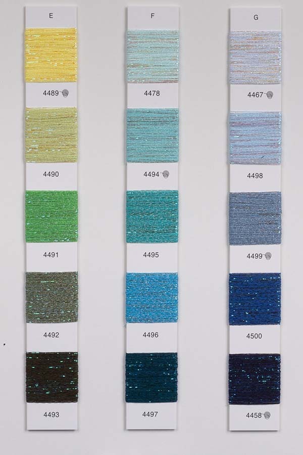 Viscosa ritorta con filo irisé per maglieria fine; il capo assume un elegante aspetto cangiante ed iridescente. Tutti i colori sono in viscosa certificata FSC®.